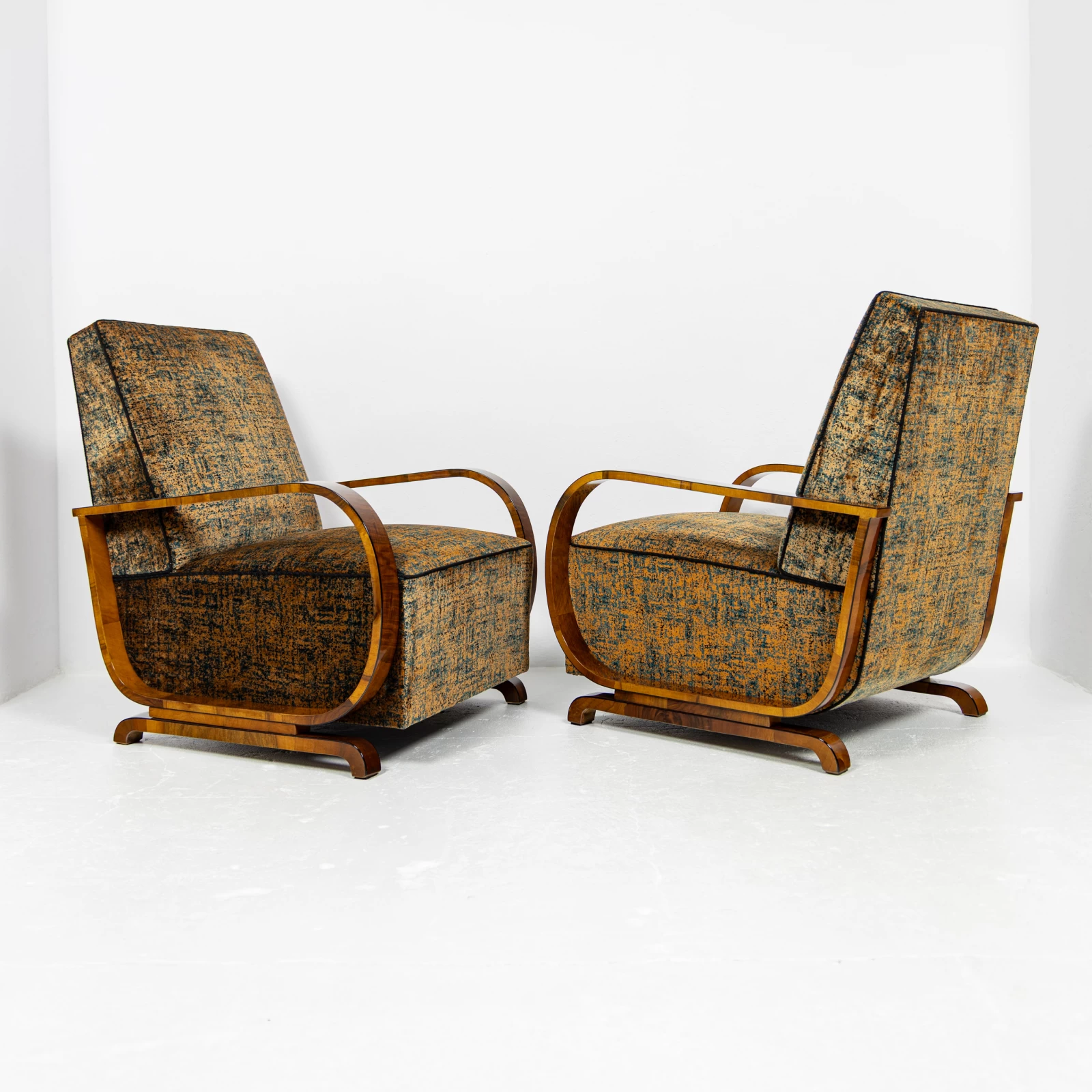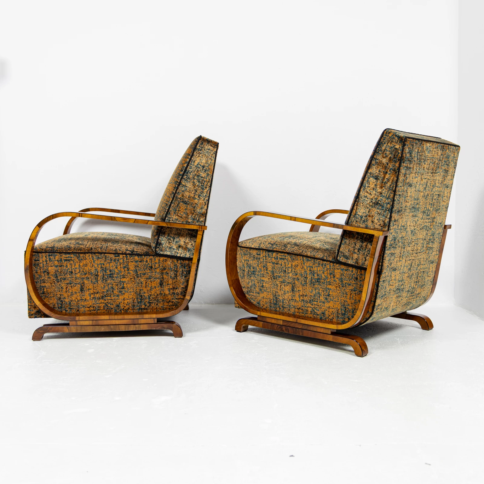 Para foteli Art Deco/Modernizm – gięte podłokietniki i orzech (Rumunia, 1930-1945)
