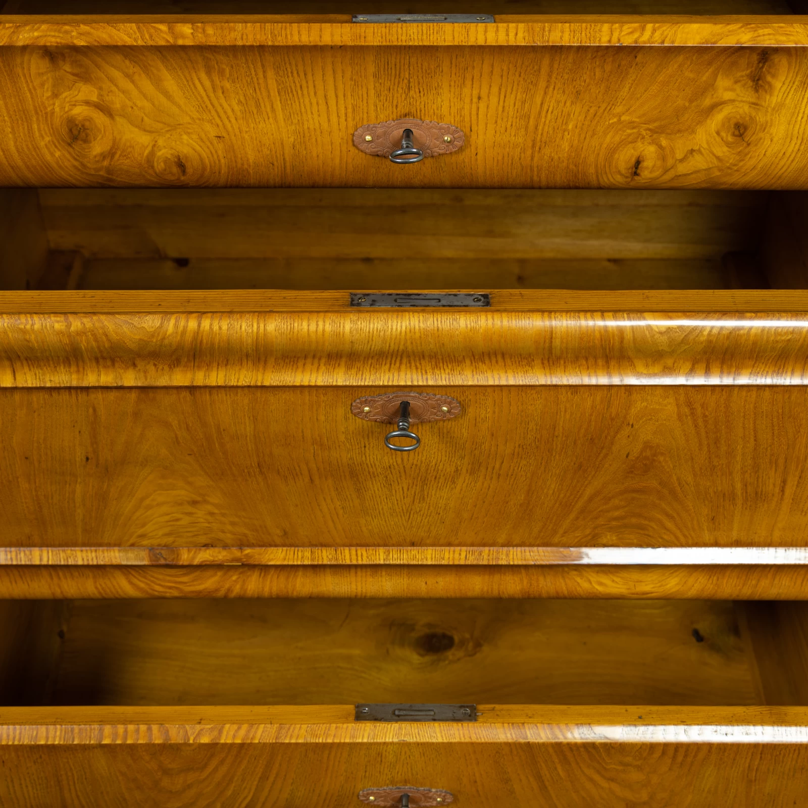 Komoda została poddana gruntownej renowacji i znajduje się w doskonałym stanie technicznym i wizualnym. Co więcej, po zakończeniu wszystkich prac konserwatorskich nie była używana, co gwarantuje jej nieskazitelny wygląd. Mebel jest w pełni stabilny i gotowy do bezpośredniego ustawienia w Państwa wnętrzu.