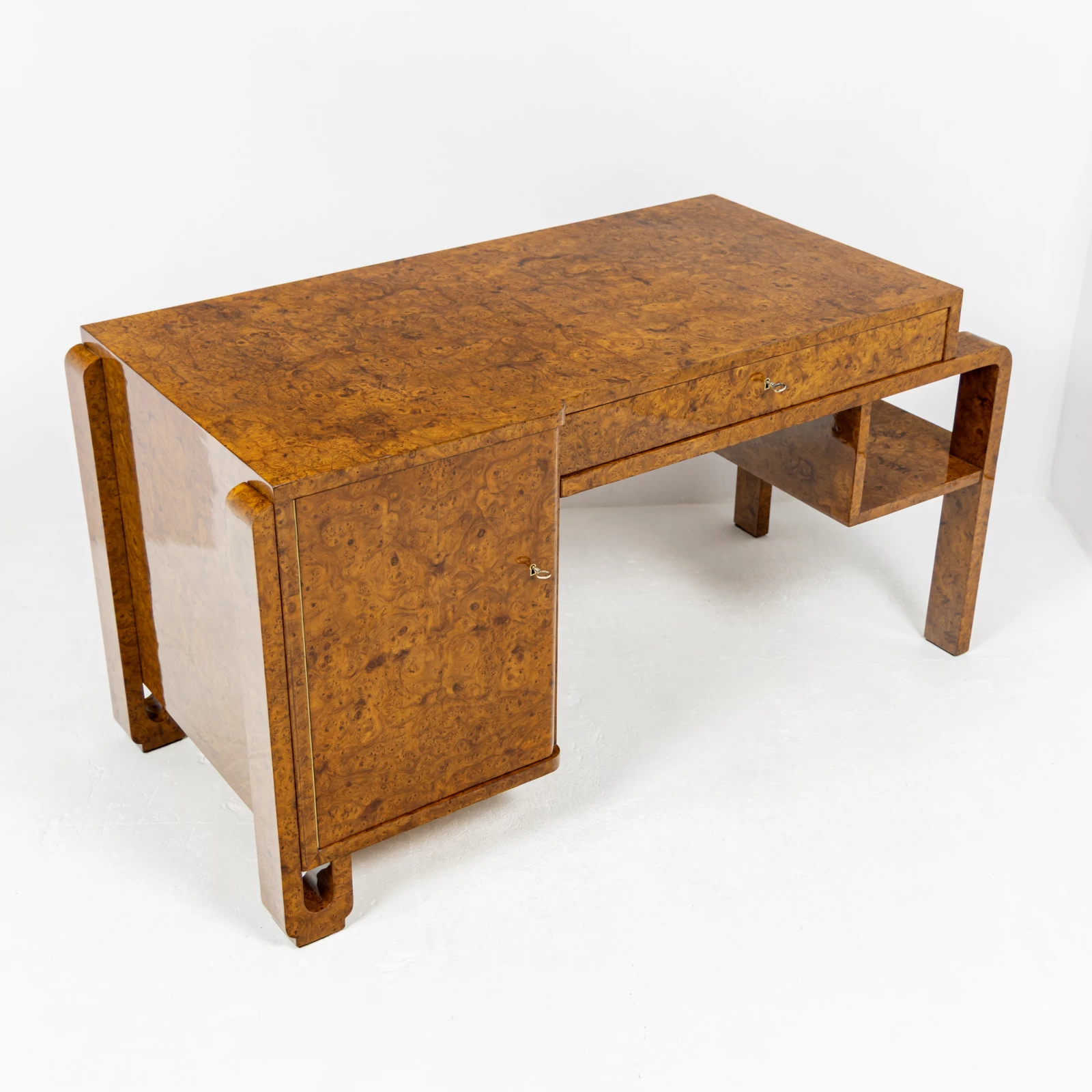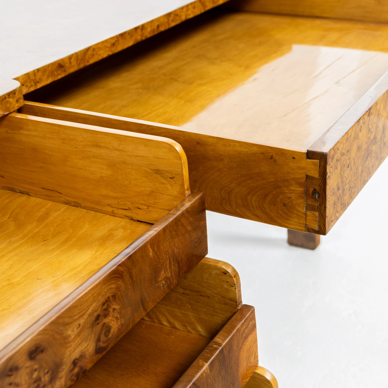 Biurko jest doskonałym przykładem designerskiego Art Deco, które ceni asymetrię i lekkość formy. Jest to biurko dwustronne, idealne do ustawienia na środku gabinetu.