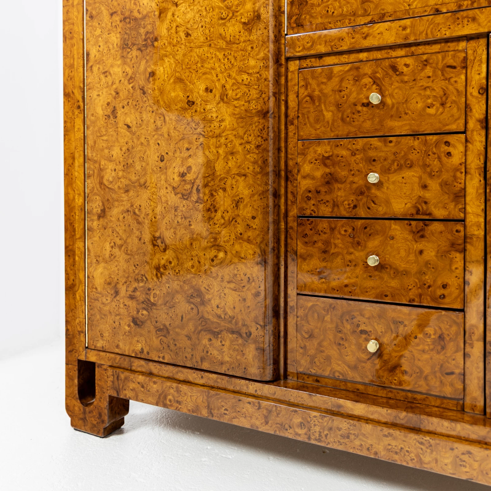 Ta mała biblioteka Art Deco to dowód na to, że funkcjonalność nie musi wykluczać wyrafinowania. Mimo niewielkich rozmiarów (W: 163 cm, S: 167 cm), oferuje wyjątkowo przemyślaną przestrzeń do przechowywania.