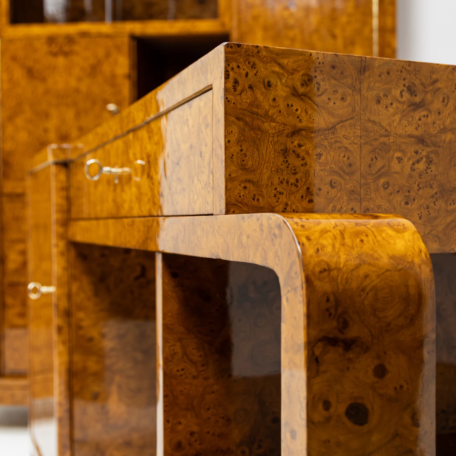 Szukają Państwo wyjątkowych mebli gabinetowych do biurka z duszą i historią? Ten komplet to inwestycja w ponadczasowy styl Art Deco.