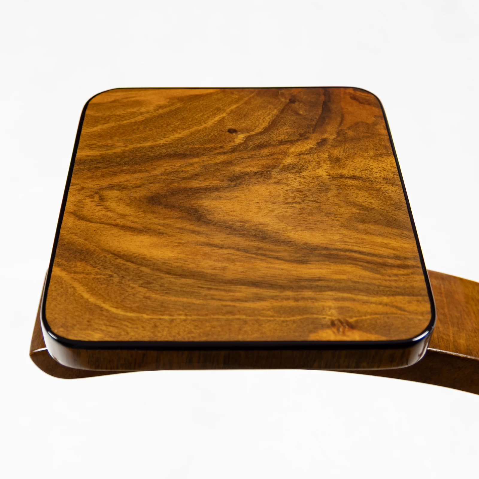Konstrukcja kwietnika została wykonana z drewna iglastego, a następnie pokryta pięknym fornirem orzechowym. Całość wykończono lakierem polerowanym na wysoki połysk, który nie tylko podkreśla naturalne piękno drewna, ale również zapewnia odporność na wodę i alkohol. To kluczowa cecha, zwłaszcza w przypadku mebla przeznaczonego na rośliny.