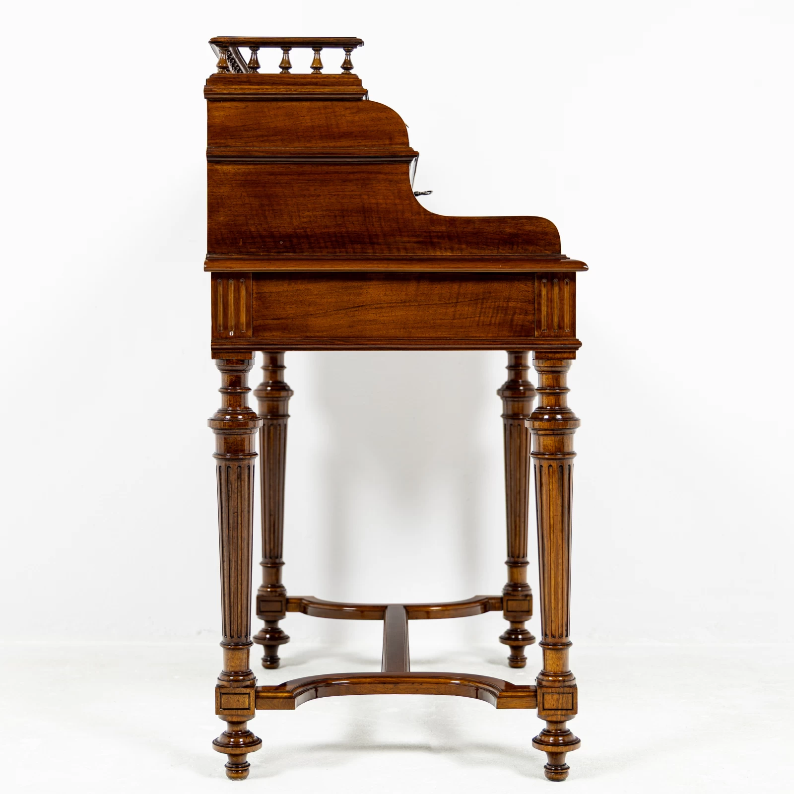 Ten stary sekretarzyk to doskonały przykład stylu Ludwika XVI, w jego neostylowej interpretacji z końca XIX wieku (lata 1880-1900). Okres ten charakteryzował się powrotem do klasycystycznych, prostych linii, symetrii i subtelnych, często inspirowanych antykiem zdobień. Francuskie pochodzenie tego mebla gwarantuje autentyczność i dbałość o detale, które są znakiem rozpoznawczym francuskiego rzemiosła. Dla kolekcjonerów to cenny antyk, łączący w sobie historyczny urok z ponadczasową estetyką.