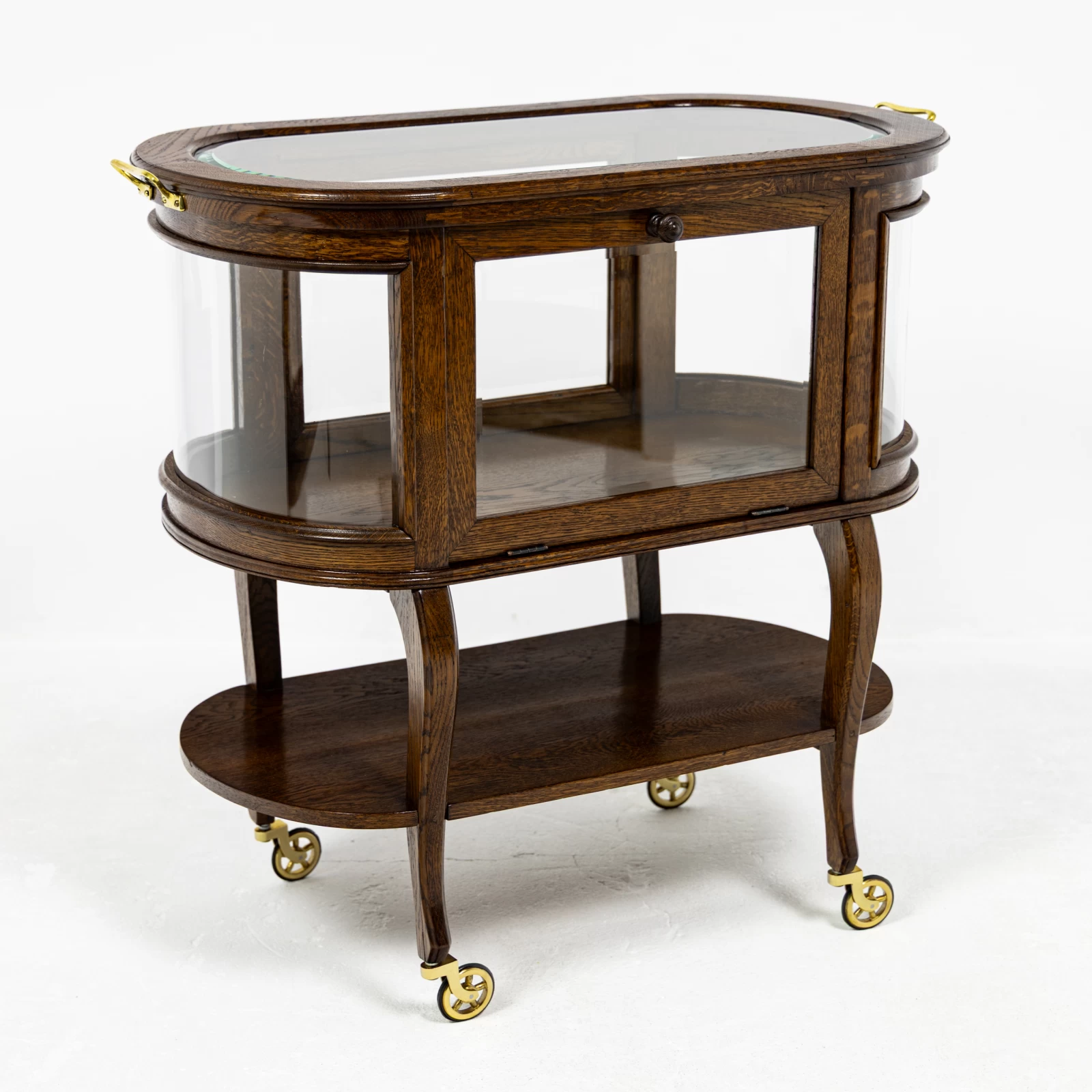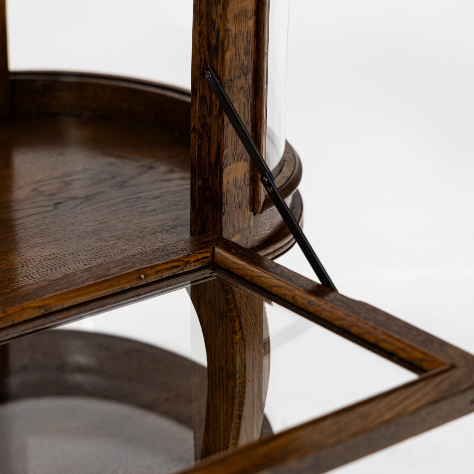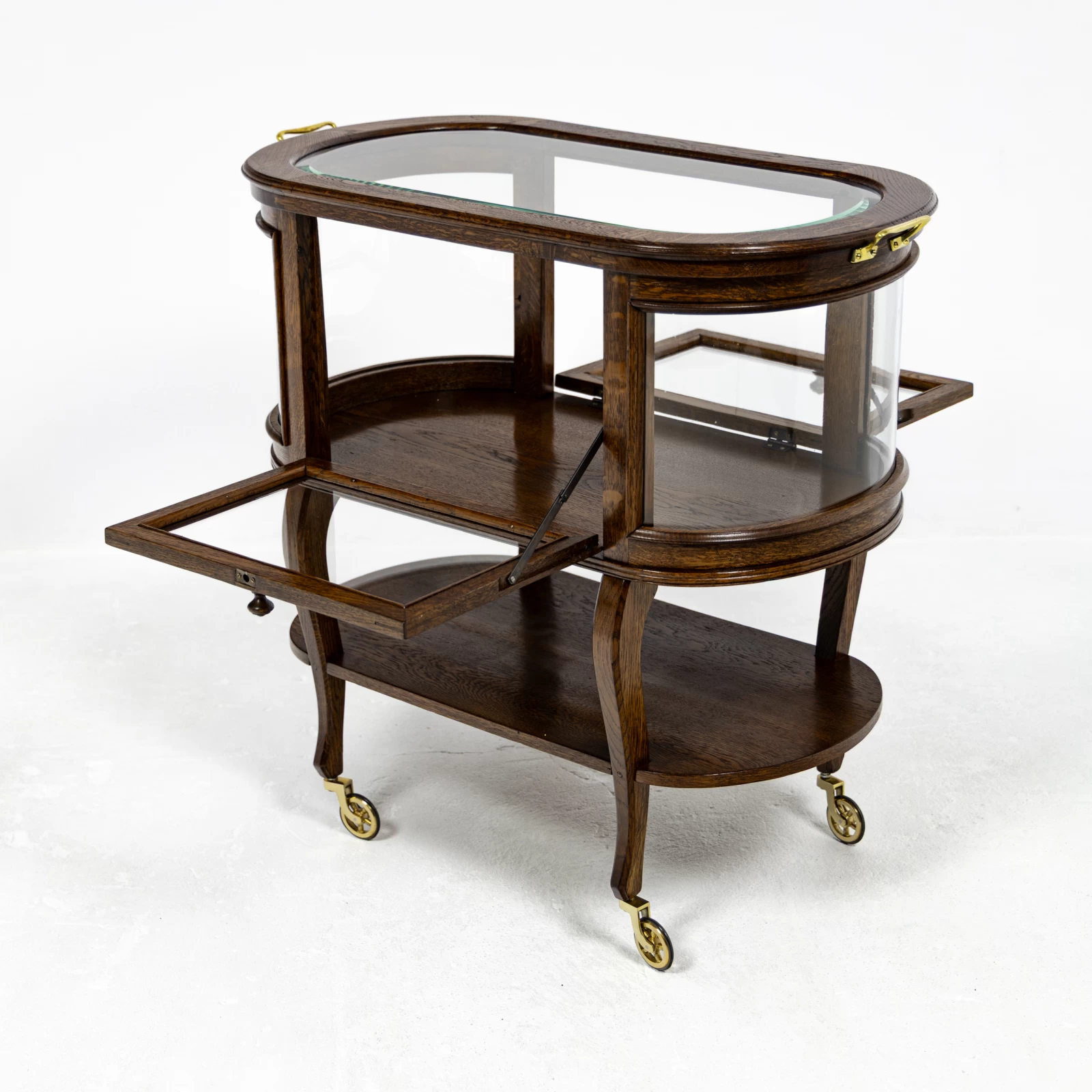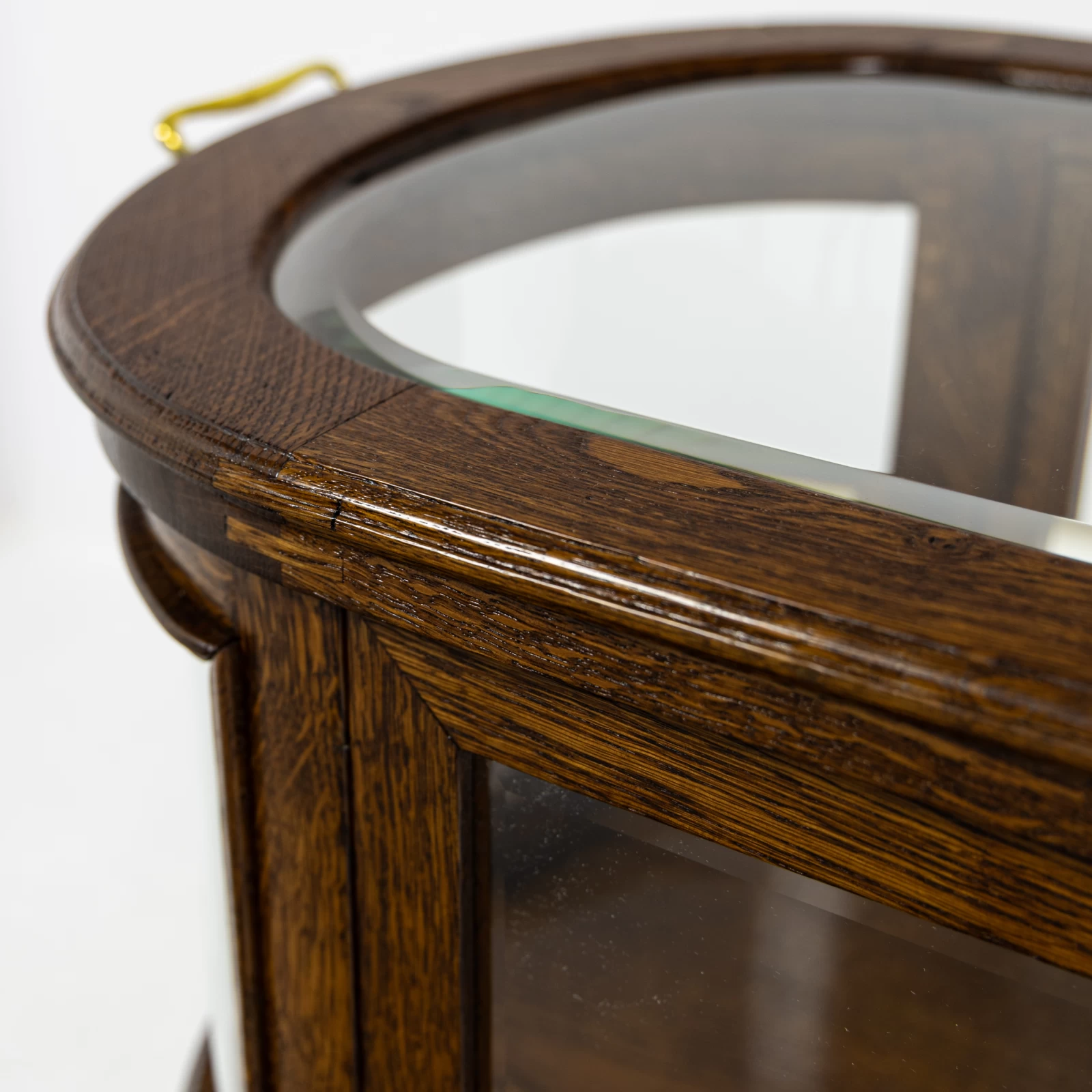 Barek wykonano z masywu drewna dębowego. Całość wykończono politurową w półmacie, a wybarwienie drewna jest zgodne z oryginałem – ciemny brąz, który pięknie uwidacznia naturalne usłojenie. Mebel jest w pełni mobilny, dzięki czterem nowym, mosiężnym, obrotowym kółkom, sprowadzonym na zamówienie z Wielkiej Brytanii. Na końcach barku znajdują się również dwa mosiężne uchwyty, które ułatwiają jego przemieszczanie.